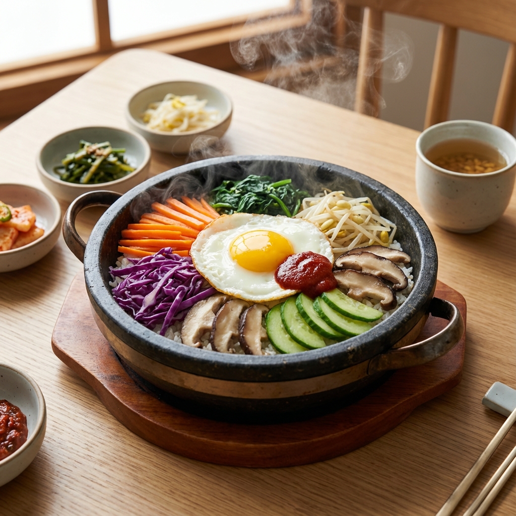 彩り鮮やかな野菜とご飯を混ぜて食べる伝統料理。栄養バランスが完璧で、野菜不足の解消にも最適です。