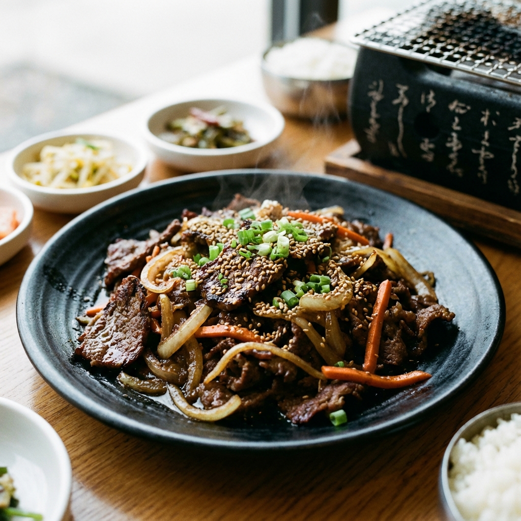 醤油ベースの甘いタレに漬け込んだ牛肉料理。辛くないため、日本人にも圧倒的な人気を誇ります。