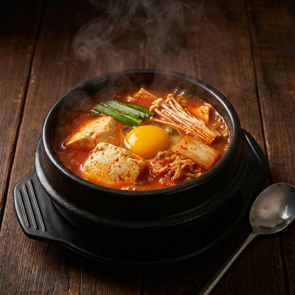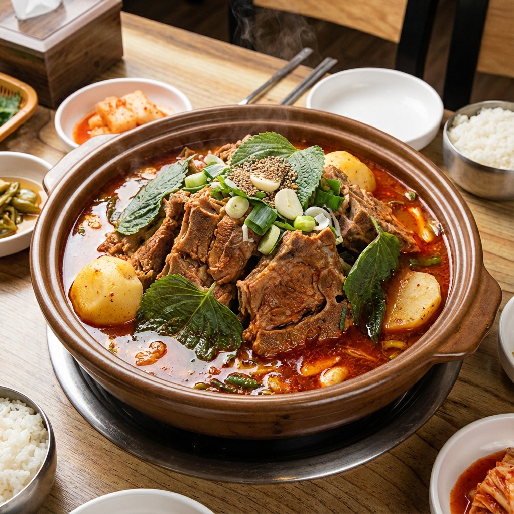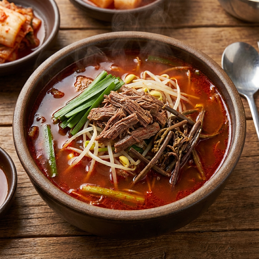 牛肉と野菜を煮込んだピリ辛スープ。スタミナ満点で、二日酔いの解消にも愛されています。