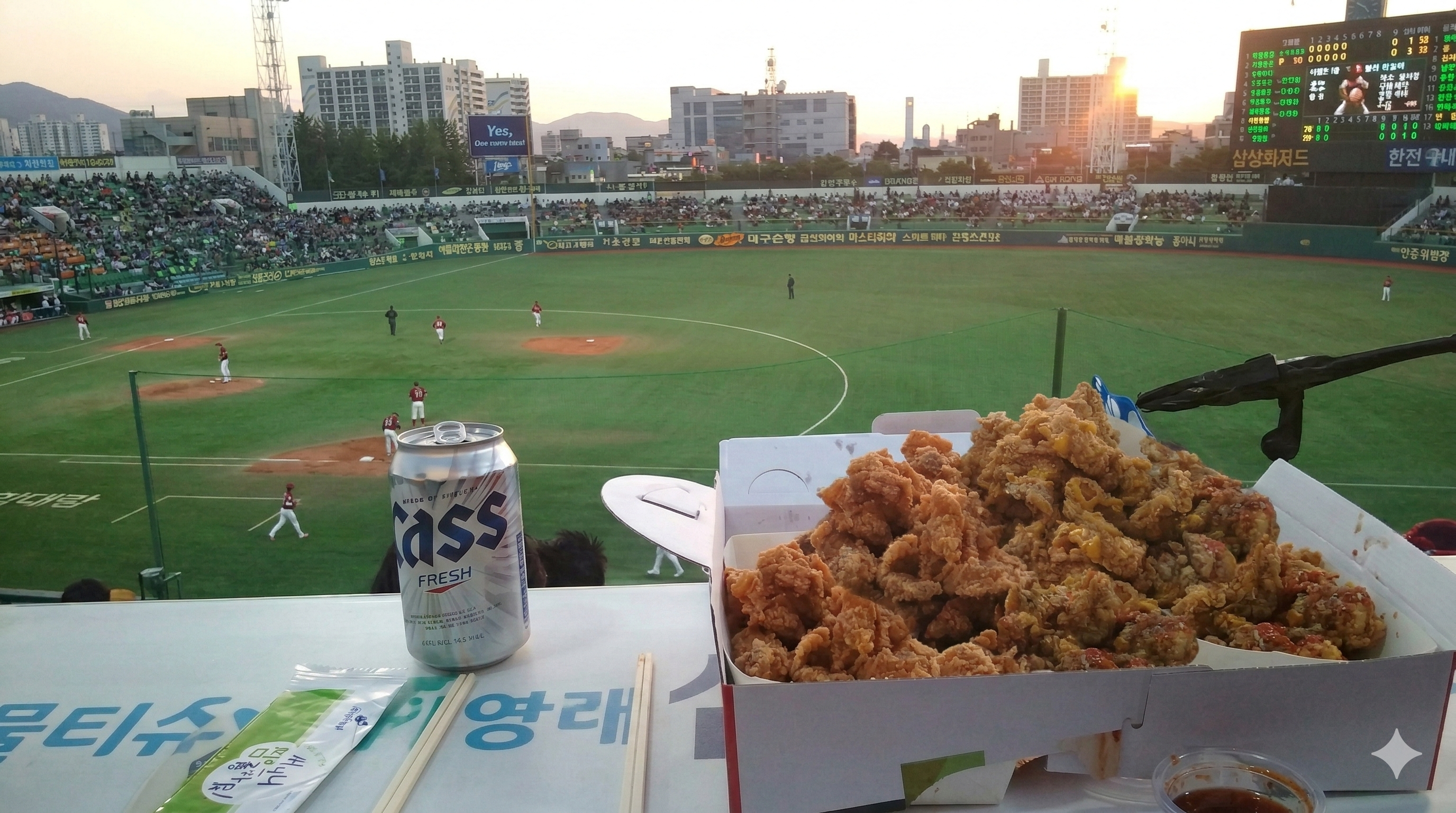 韓国野球は「何を食べながら応援するか」まで含めて体験でした。チキンとビール(チメク)は定番で、球場ごとにシグネチャーグルメもあります。蚕室(チャムシル)球場の「ワンショットチキン」も有名です。