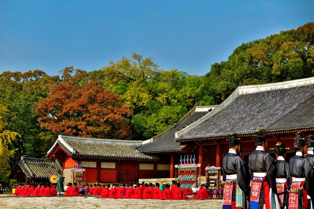 年に一度、毎年5月の第一日曜日には、朝鮮王朝時代から続く王室の祭礼儀式『宗廟大祭(チョンミョ デジェ)』が開催されています。参列者は数百人にものぼり、韓国最大の伝統行事と言えます。現在の祭礼の形式は1462年に定着したものを伝承しているとされており、1975年に「重要無形文化財 第56号」、2001年には「ユネスコ世界無形文化遺産」に指定されました。儀式は無料で拝観できますが、当日は多くの人々で賑わいます。