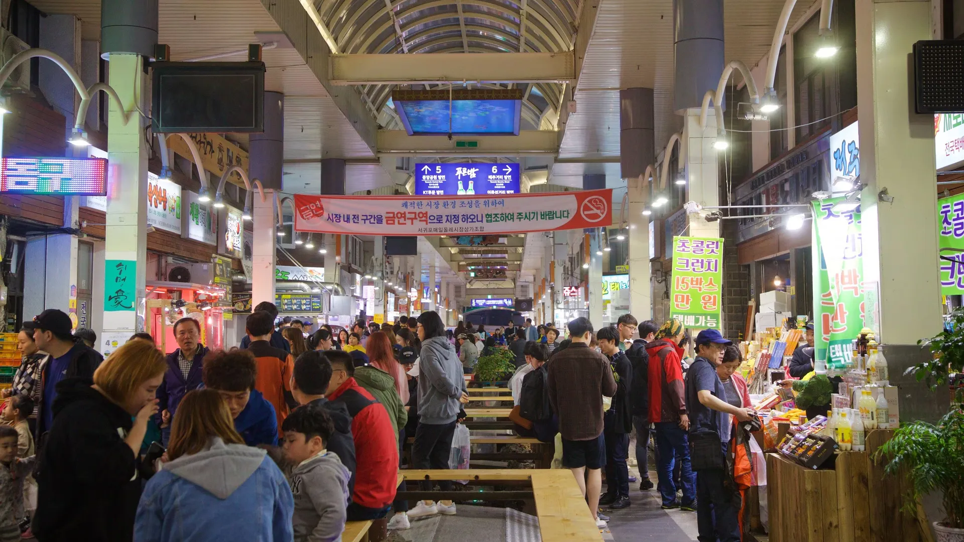 1960年代初頭に設立されたこの市場は、西帰浦最大の伝統市場であり、地元の人々はもちろん観光客にも人気のスポットです。海に近い立地を活かし、新鮮なお刺身や黒豚、ハルラボンなど、済州島ならではの特産品が豊富に揃っているのが魅力。市場で購入したグルメをテイクアウトしてホテルでゆっくり味わうのもおすすめです◎